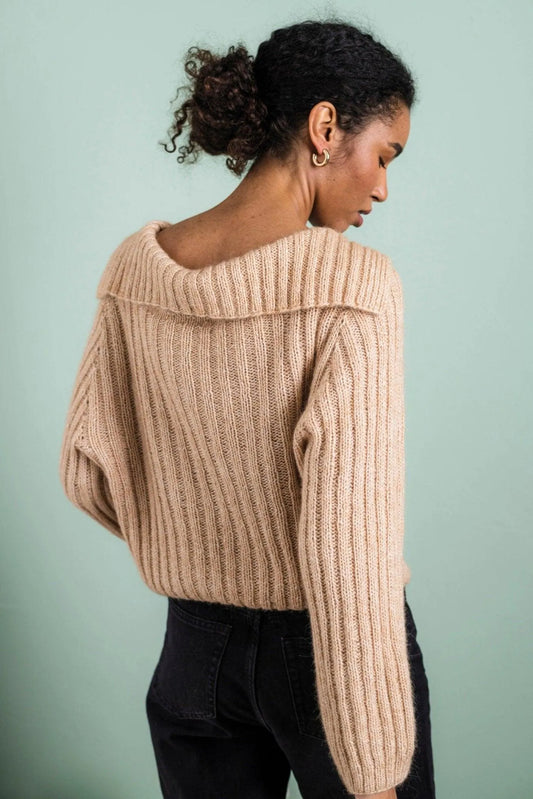 Bergamo – ribbstickad tröja med stor krage