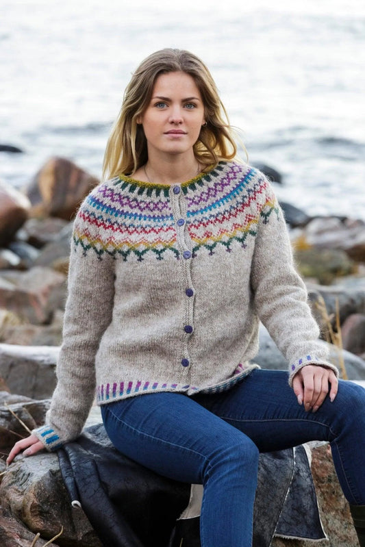 Maja- islandskofta med mönsterstickat ok