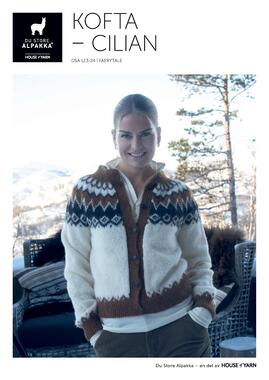 Kofta med mönsterstickat ok i Faerytale. Koftan stickas runt på rundsticka och klipps upp