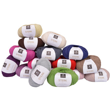Garnet Sterk från Du Store Alpakka är en härlig garnkvalitet. Detta på grund av många orsaker. För det första är garnet sammansatt av tre material. Det är 40% alpackagarn som ger en härlig mjukhet i kvaliteten. Alpacka består av ihåliga fibrer som ger en optimal isolering mot både kyla och värme. Isoleringen och de ihåliga fibrerna gör att alpackagarn håller dig härligt varm.