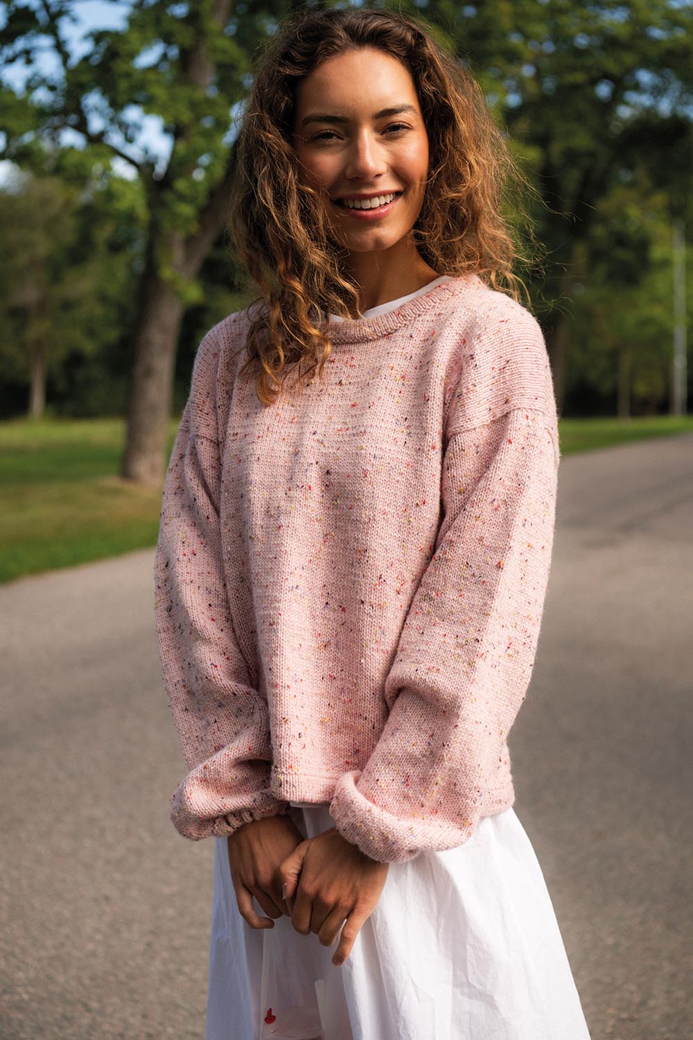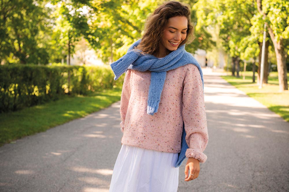 En härlig baströja med en twist. Ärmsluten har ett resårband vilket ger en uppdaterad look, samtidigt som tröjans minimalistiska detaljer låter garnet skina!