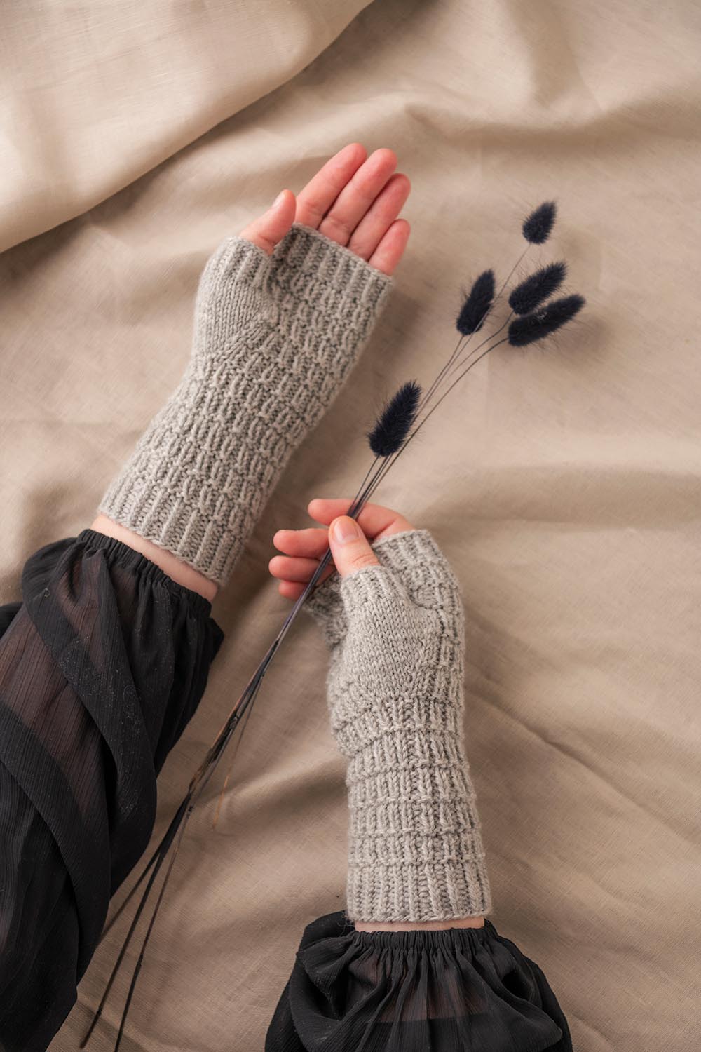 Klintehamn är en vante med lite tightare passform för att värma kalla handleder. Vanten stickas i ett enkelt strukturmönster, nedifrån upp och med tumkil.