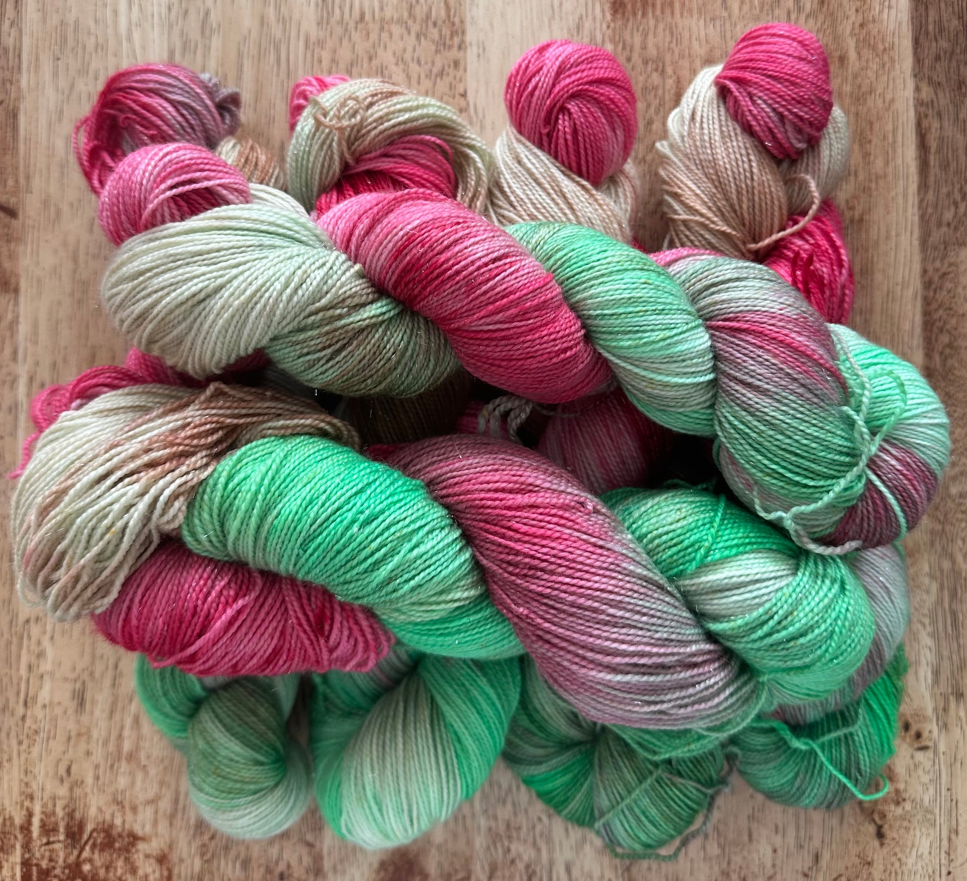 Kvalitet:  75% SW merino, 20% nylon och 5% silver stelina sparkle